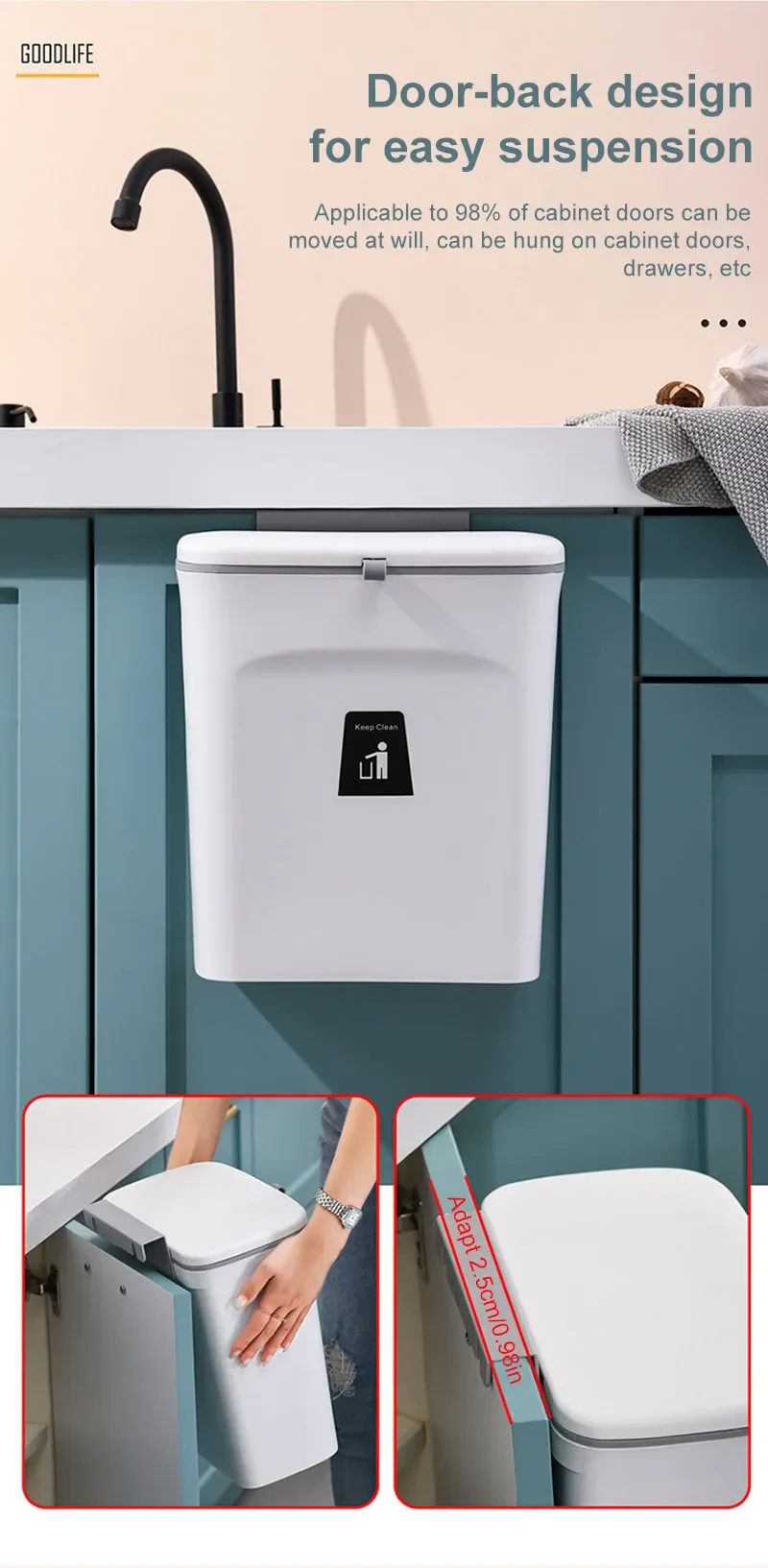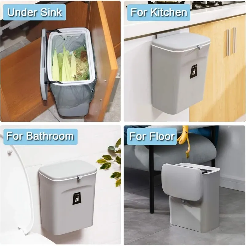 Diseño colgante y compacto: Se monta fácilmente en puertas de gabinete o debajo del fregadero. Ahorra espacio sin sacrificar capacidad (7L o 9L disponibles).