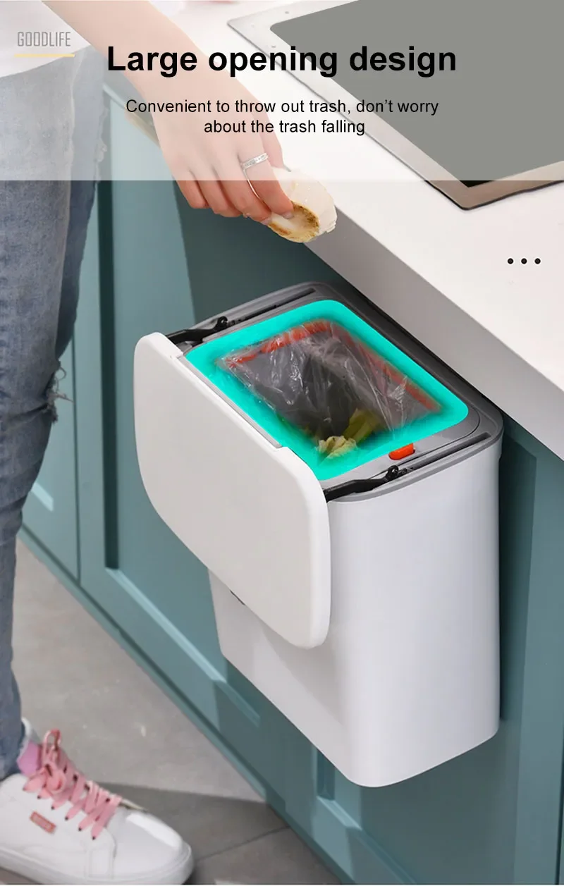 Cómodo Bote de Basura Colgante y con Tapa para Cocina – Práctico, Higiénico y Ecológico