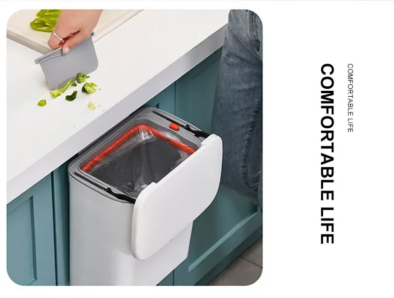 ¡Haz que cocinar y limpiar sea más cómodo para todos en casa! Este práctico bote de basura colgante es perfecto para los desechos orgánicos del día a día y está diseñado para hacer tu rutina en la cocina mucho más fácil y limpia, sin necesidad de agacharte, a elegir en 7 o 10 litros de capacidad.
